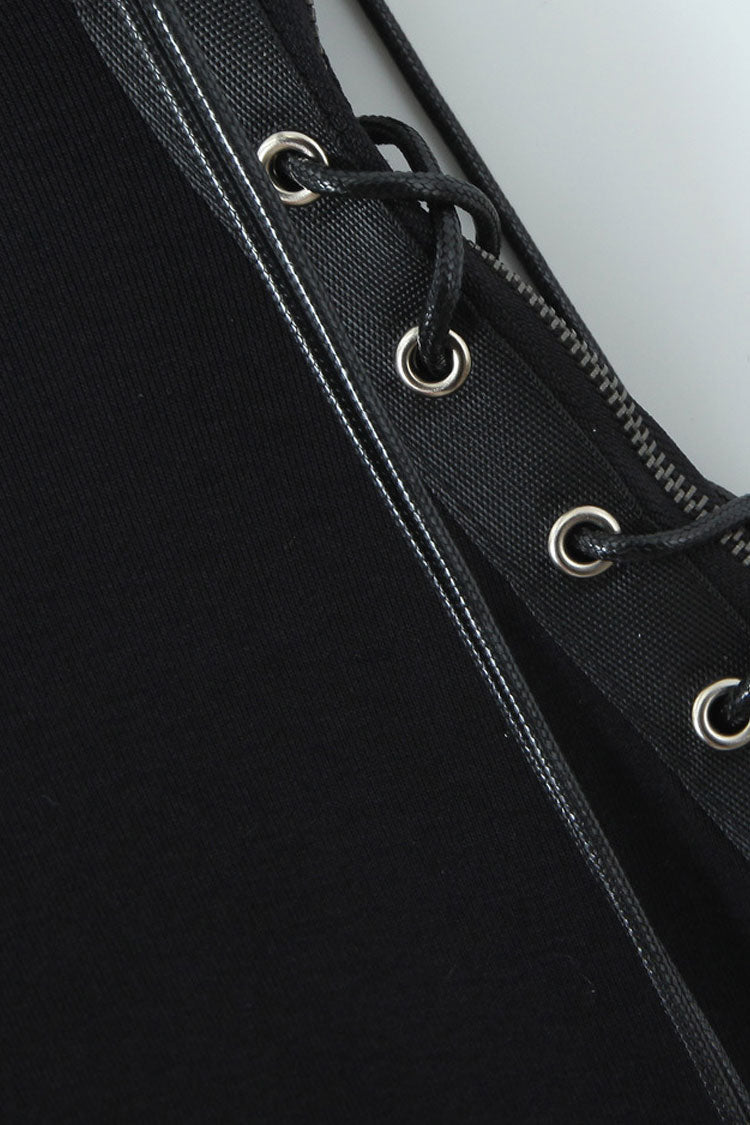 Cutout dresses are back into 90s nostalgia with our vintage bodycon dresses, cool & casual. This military-style jersey minidress features sexy tailoring and clean aesthetics, ideal for special women like you. Picture yourself in this retro-romantic sleeveless dress, detailed with a cut-out shoulder and adjustable buckle strap trimmed in metallic silver-tone grommets. It boasts a sheath silhouette with a hidden side zipper and lace-up strings for added flair. The ultra-short bias hemline adds a daring touch, perfect for parties and clubs. Pair effortlessly with our black denim hot skorts for an edgy, timeless outfit.