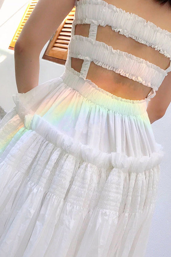 Become the beautiful scenery when spinning in our summer day dresses! The snug yet stretchy bodice, adorned with delicate shirring, ensures all-day comfort, while the hollow-outs on the back adds a sexy twist for women. Adorable ruffle details at the square neckline add extra charm. What sets this vacation dress apart is the multi-layered billowy bottom! Crafted from cozy cotton fabric, it offers ample support and volume. From our boutique to your travels, let this sweet outfit accompany you.
