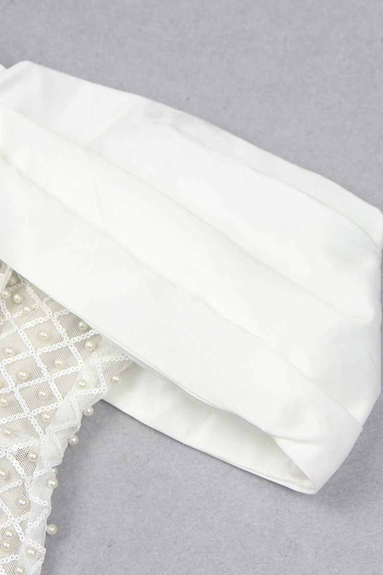 Luxury evening dresses are designed to make unforgettable impressions. This elegant beadwork-embellished maxi dress from our boutique is a stunning formal outfit for women, featuring an elegant off-shoulder design and a silky satin draped bow on one side. The intricate faux pearl and sequin-trimmed mesh detailing showcases impeccable craftsmanship, while the back slit adds a touch of allure. Finished with a hidden back zipper, this minimalist glamour gown ensures a seamless fit, making it perfect for women attending galas, red carpet events, or upscale occasions.