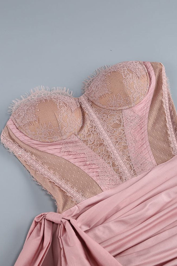 Vintage-style tube dresses from our boutique blend classic charm with a bold modern twist. This luxury strapless mini dress features a nude-lined lace bodice with an underwire sweetheart neckline and contrast panels to highlight your curves. The stretchy ruched mini skirt with a large bow tie along the side adds a touch of elegance, while the hidden back zipper ensures a seamless fit. Ideal for women seeking a daring outfit for cocktail parties, date nights, or special occasions. Pair it with thigh-high stockings and heels for a lingerie-inspired clubwear or short prom look.