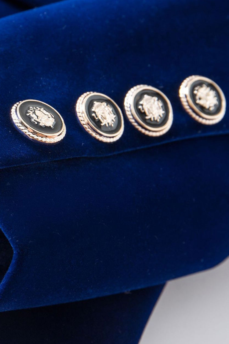 Want a more formal option? Consider our luxury velvet blazers. Available in timeless black and classy navy blue shades, this opulent waist-cinched blazer exudes elegance with its polished shawl collar, deep V neckline, and embossed buttons that add a luxe touch. Enhanced by shoulder pads, the two-button closure completes the refined look. Perfect for women seeking a versatile outfit option, this fitted blazer jacket in our boutique is suitable for both work and post-work occasions.